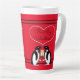 The design features two dapper penguins, with champagne. At the top, a heart and the words, "Be My Valentine", which can be customised.