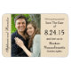 Photo magnet save-the-date with black text on champagne coloured background. Easily add a picture of the couple to this 4x6 inch, magnetic wedding announcement.