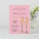 An elegant bachelorette party invitation featuring 2 champagne glasses with black and gold text and black back.