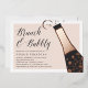 Pop the champagne! Cute bridal shower brunch invitations feature a black and rose gold foil bottle of champagne with the words "brunch & bubbly" in calligraphy script lettering. Personalise with your bridal shower brunch details beneath.