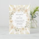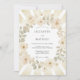 This design features a warm palette of cream and champagne hues accented by muted sage green foliage. Soft watercolor roses are arranged in a delicate arrangement, creating a soft floral glow. Light rays emanate from the background, providing an ethereal and radiant atmosphere for a romantic event.