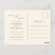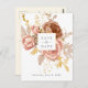 Save the date postcard featuring a champagne colour themed bouquet of roses in blush pink, chocolate brown, beige and tan. Faux gold embossed foliage and other accentuating details. Please note: the gold embossed details in this postcard is gold imitation. Not gold foliage.