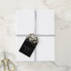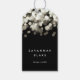 Chic hang tags for your business feature a crisp black background with a top border of luminous bokeh lights in shades of white and champagne. Customise with two lines of custom text beneath in white. Backs are solid white for your additional custom text or handwritten message.