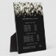 Elegant plaque with easel displays your services, price list or business information in white lettering on a crisp black background, with luminous white and champagne bokeh lights at the top. Includes three customizable headings and body text fields. To adjust layout, enter your text and then use the Customize function to change positioning and font sizes.