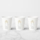 Festive and elegant bridal shower paper cup features a pair of clinking champagne glasses in watercolor, filled with sparkling bubbly. Personalise with your event name in chic grey lettering.