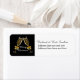 Elegant black and gold design with champagne toasting flutes on Christmas return address labels.