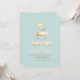 Champagne tower. Gold text. Invitation. Turquoise background.