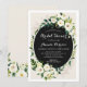 This Stunning Floral Bridal Shower Invitation features an oval frame wrapping around Ivory White Chic Greenery Watercolor flowers. These cards are the perfect invites for gathering your friends and family together to celebrate the Bride-to-Be!