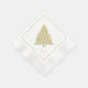 A square napkin, with the “Joyoux Noel” Christmas tree and a fine line bordering it. These products complement the Joyoux Noel collection, which has cards, mugs, and more!