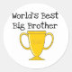 A big gold trophy that reads "Champ" and text that reads "World's Best Big Brother" on big brother shirts, mugs, tote bags, buttons, keychains, cards, and more!