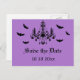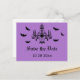 An eerie chandelier and group of bats accents this Halloween Save the Date postcard.