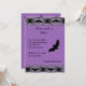 Dainty spiders and bats decorate the lace on this invitation, giving it an eerie feel. The back is further decorated with bats in flight around a chandelier. This is perfect for the grown up party. The coordinating envelope is also available.