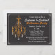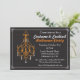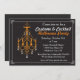 This Halloween invitation features a black and damask background with an orange chandelier with white sparkly crystals. Easily customise for an adult costume and cocktails party.