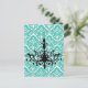 Chandelier Silhouette Teal Damask Postcard