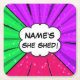 Change ALL Text Add Name She Shed Comic Style Square Paper Coaster
