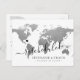 Silver world map postcard for change in plans of a destination wedding that's been rescheduled or postponed postcard with fully editable text so you can explain as much, or as little as you like, and provide a website for guests to check for updates and changes. —— Click CUSTOMIZE FURTHER to move the heart, change the background and text colour, change fonts, or rearrange the whole thing and create your own design using our unique faux gold foil map art. —— Perfect for tropical, beach, island, city, mountain and adventure destination wedding locations all over the world. Check our designer shop for coordinating items!