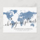 Dusty blue watercolor texture world map destination wedding cancellation, new date, reschedule or postponed postcard with fully editable text so you can explain as much, or as little as you like, and provide a website for guests to check for updates and changes. —— Click CUSTOMIZE FURTHER to move the heart, change the background and text colour, change fonts, or rearrange the whole thing and create your own design using our elegant blue map art. —— Perfect for tropical, beach, island, city, mountain and adventure destination wedding locations all over the world. Check our Paper Grape Destinations Designer Shop Collections for coordinating items.