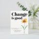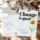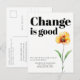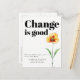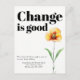Announce your exciting new chapter with our 'Change is Good' moving announcement postcard. This design features a minimalist aesthetic with a touch of floral charm, perfectly capturing the fresh start of a new home. The bold typography makes a statement while the watercolor flower adds a delicate touch of elegance. Personalise it with your new address and a sweet message to let loved ones know about your move. Share the joy of your new beginning with style and grace. It's the perfect blend of modern design and heartfelt sentiment, making it a memorable way to update your friends and family on your relocation.