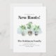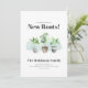 Change of address announcement card featuring boho watercolor potted house plants and modern typography. The design minimal and easy to customise with your details by clicking the "Personalise" button above.
