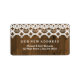 A brown wood look decorates this rustic style address label. Pretty white lace hangs from the top. The perfect way to easily let friends and family know you have moved.