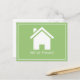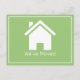 Change of address post card done in green with a white house icon and text reading We've Moved. The back of the postcard has the information you want people to know. Customise all the text front and back to suit your needs.