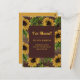 Rustic change of address / Moving announcement postcard bright yellow country sunflowers on a dark brown barn wood background. Text, font, and wording are completely customisable. Contact us for help with customisation or matching products.