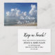 Over an original photo of a beach scene with huge, amazing white clouds in a blue sky, I've placed some white place holder text, "The Olivers Have Moved" . This type was rendered in a pretty, bold modern script font. Ideal for someone who's just moved to the beach. Feel free to replace my photo with your own, if you like. You might choose to change just your name, or the whole message. Use the handy template field to do so! On the back, the same script font was used to type "Keep in Touch!" in black. Beneath that, template fields are provided for a variety of your new details. Change the wording as you see fit. You may also change text colours, placement, and even fonts! // Designed by Melody Watson for Paper Muserie.