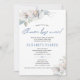 Modern chic rescheduled baby shower by mail invitation featuring slate blue and blush ivory winter flowers with grey botanical foliage and leaves and a classy trendy handwriting whimsical dusty blue faux glitter typography script. +++++++++++ Easy to personalise it with your details! ++++++++++ Suitable for elegant floral glam themed long distance social distancing baby boy or girl showers - shower the mum to be with cards and gifts by mail.