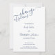 Elegant and simple Change of Plans announcement card with your photo on the back, to notify guests of your wedding postponement. The design is in navy blue and white with hand lettered script typography for the names of the bride and groom and the words "change of plans". The sample wording reads "The wedding of [your names] has been postponed. We will let you know as soon as we set a new date. It was a difficult decision and we thank you for your love and understanding". The template is set up ready for you to add your photo, your names and edit as much of the text as you wish.