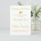 Announce that your wedding has been postponed with this "Change of Plans" enclosure card. The top has "Change of Plans" written in green with a fall leaf graphic underneath. There is then alternating orange and green font with your information. Personalise yours today!