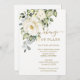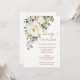 Elegant card design featuring watercolour white cream flowers and green leaves, on a white background. On the back white flowers bouquet. Use Personalise tool to add your info. For matching items, please, visit my White Flowers Bloom Collection