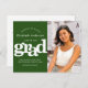 Make sure all your friends and relatives will still be able to celebrate your graduate’s milestone event, regardless of current global unforeseen circumstances. Send out this stunning, simple, modern, personalised photo “Change of Plans” postcard for an event to remember. Bold, graphic, white typography overlays a hunter green background. On the right hand side, add a photo of your choice. Personalise the custom text with your graduate’s name, class year and date information. Your custom message, a hunter green graduation cap icon and your return address adorn the back. Matching invites, thank you cards, cap toppers, napkins, plates and other graduation goodies are also available in this trendy and stylish collection. Make sure their special celebration will still be as festive as originally planned!
