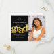Make sure all your friends and relatives will still be able to celebrate your graduate’s milestone event, regardless of current global unforeseen circumstances. Send out this stunning, simple, modern, personalised photo “Change of Plans” postcard for an event to remember. Bold, graphic, faux gold foil typography overlays a black background. On the right hand side, add a photo of your choice. Personalise the custom text with your graduate’s name, class year and date information. Your custom message, a faux gold foil graduation cap icon and your return address adorn the back. Matching invites, thank you cards, cap toppers, napkins, plates and other graduation goodies are also available in this trendy and stylish collection. Make sure their special celebration will still be as festive as originally planned!