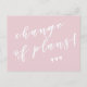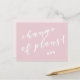 NewParkLane - Postcard, with 'Change of Plans' in elegant white brush script / calligraphy typography and three cute little hearts, against a dusty pink background.