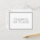 Sometimes, unforeseen circumstances can cause you to change your plans. Whether a wedding, birthday party, anniversary, retirement or other celebration, if you have already sent out invitations and then are forced to change your date or other aspect of your event, this card is a great way to get the word out to your invited guests. Simply personalise the sample text with your desired information.
