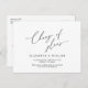 This is the modern minimalist clean script, design themed, in Black font, Wedding party invitation Rescheduled postcard (change of plans). It is the perfect and elegant way to make the reschedule announcement to your friends and family.
