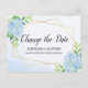 Change The Date Geometric Hydrangea Wedding Announcement Postcard