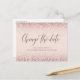 Announce updated details for an event that's been rescheduled, postponed, changed, or delayed with a rose gold blush pink glitter postcard with a pointy modern calligraphy script font. Text colour is editable by clicking 'customise further', or transfer the design to a card with a mailing envelope using the transfer feature below. Find more in the Paper Grape Zazzle Designer shop, or contact the designer for more customisations.