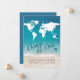 Rescheduled Destination Beach Wedding Announcement Card with a world map and moveable heart location indicator with a deep turquoise blue ocean and sand shore background. Use this card to send new travel information for a postponed or new date or location for your travel theme destination wedding that has been delayed due to travel restrictions or any unforeseen circumstances causing your wedding plans to change.