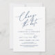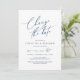 This is the Wedding party invitation Rescheduled, save our new date (postponed / postponement) card (Change the date), in the modern minimal simple clean romantic navy blue design themed. It is the perfect way to make the event reschedule announcement to your friends and family.