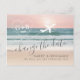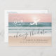 Change the Date Announcement for a Beach Destination Wedding to let guests know that your wedding location or date (or both) has to be rescheduled or changed for any reason at all. The wording is vague enough so you don't have to share the reason, or edit the text to give a full explanation if you wish. A beautiful rose gold pink and aqua blue sunset over a beach features pretty turquoise ocean waves and sand, and our fun travel theme aeroplane monogram logo with initials in the middle make a unique wedding logo.