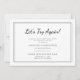 Announce to your family a friends a change of your wedding date with this stylish photo card. The design features a clean white background with a black border and the greeting "Let's Try Again!" Custom text allows you to add the names of the bride and groom and a new wedding date along with a photo on the backside.