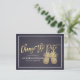 Elegant Faux Gold Foil Pineapple Couple on Navy Blue Floral Damask Linen Background.