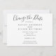 Vertical hand lettered white script overlay design photo wedding CHANGE the date announcement card - horizontal. Send out your change the date cards as newly engaged couple to your friends and family using this beautifully, simple save the date postcard with a white handwriting script text overlay design. Design by Elke Clarke© . Replace the sample photo with your own. Add your personal information on the front and on the back.