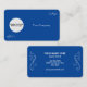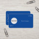 This is a personalised business card template on a blue background. You can change the circle with your company logo, also writing down your company name beside the logo. The objects are customisable, which means that you can resize or reposition them.