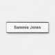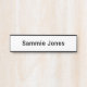 Easily personalise this changeable door name plate with your name or other custom text. You can customise the white background colour. Available in other metal colours in two sizes – standard 2 inch x 8 inch or long 2 inch x 10 inch – and in two styles – as a door name plate or a desk name plate. No minimum order quantity and no setup fee.