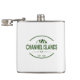 The flask itself is fine. It’s a cheap flask, obviously bought in bulk, however am prepared to overlook that. Given that it is a personalized item, I would have liked to have seen gift boxing instead of the generic packaging. Terrible printing, and/or quality. It’s a cheap, tacky vinyl. It is not cut straight and is also applied in a way that it is overhanging the bottom, causing the glue to catch on items and it will eventually roll and tear, damaging the wrap.