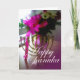 Happy Chanuka Greeting Card. Beautiful pink flowers with menorah.