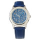 Kids’ stainless steel blue leather strap watch with an image of silver dreidels and lighted silver menorahs on blue. See matching round charm and round basic button keychain. See the entire Hanukkah Watch collection under the ACCESSORIES category in the HOLIDAYS section.
