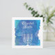 A contemporary design with a blue, watercolor background and classic font that spells out "Chanukah Lights" over a white menorah. Vecteezy Jewish Candlesticks.